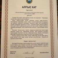 - ЦМРИТО шығармашылық топ та белсенді жұмыс жасағаны үшін, Алғыс хат, 2019 жыл;