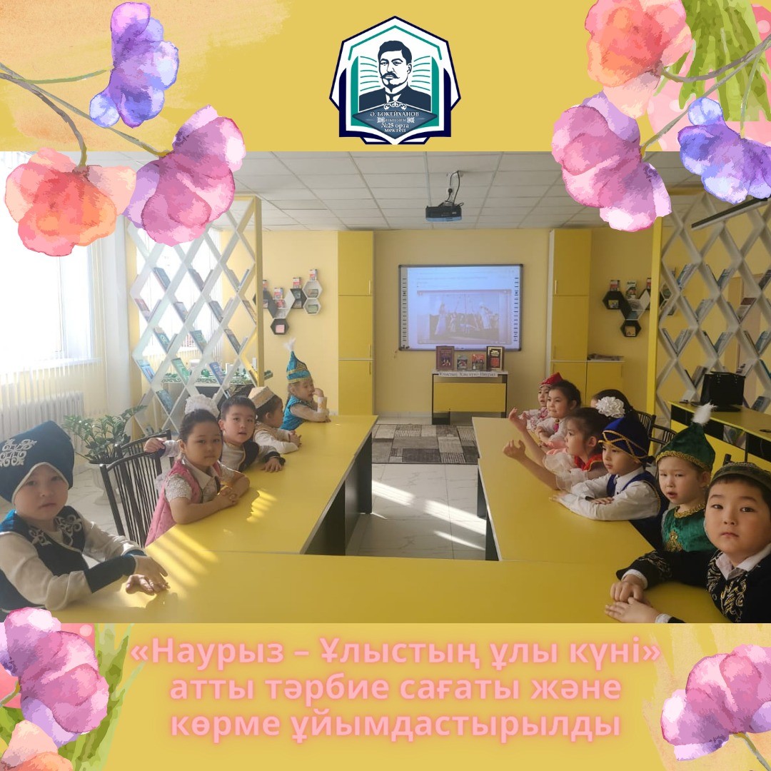 Наурыз мейрамы- көктемгі жаңару мерекесі. Күн мен түннің теңесіп,жаңа күннің келер басы- Наурыздың табалдырықты аттайтын сәтіне де санаулы күн қалды.Ұлыстың ұлы күніне орай мектеп кітапхансында 1- сыныптарға арналған «Наурыз – Ұлыстың ұлы күні» атты тәрбие сағаты және көрме ұйымдастырылды.