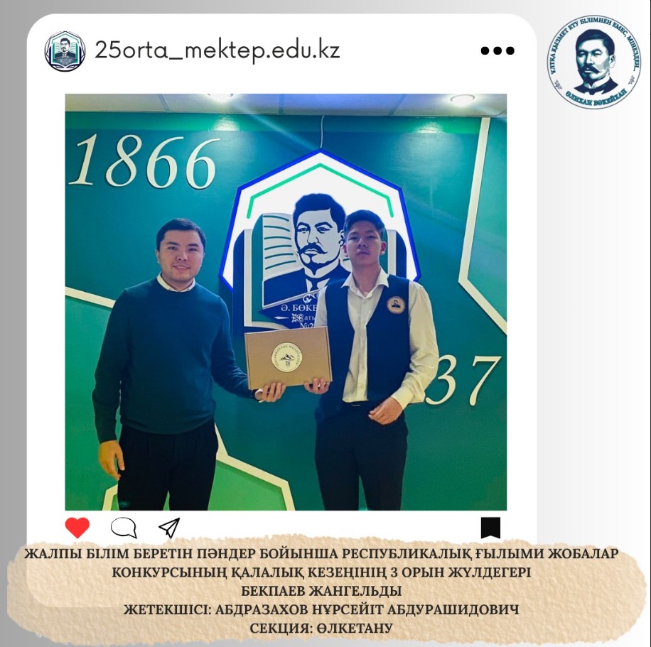 ✨ Жүлдегерлерімізді шын жүректен құттықтаймыз! Бұл – қажырлы еңбектің, табандылықтың және ұстаз бен оқушы арасындағы ынтымақтастықтың жемісі.