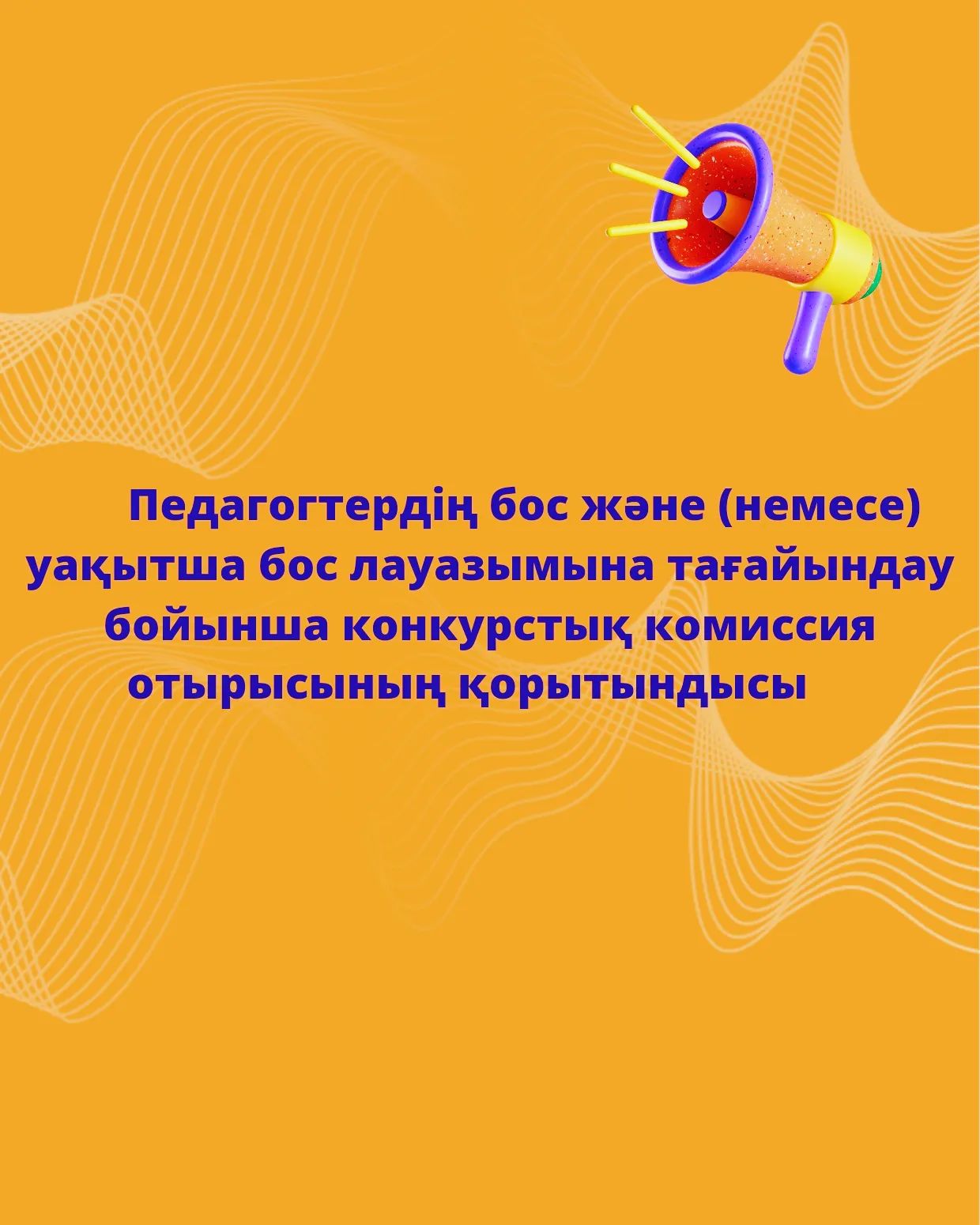 2023 жылдың 31 тамызында «Әлихан Бөкейхан атындағы №25 жалпы білім беретін орта мектеп» КММ-де педагогтердің бос және (немесе) уақытша бос лауазымына тағайындау бойынша конкурстық комиссия отырысын өткізді. Конкурстық комиссия 3 кандидаттың құжаттарын біліктілік талаптарға сәйкестігін қарау нәтижелері бойынша, Бағалау парағында көрсетілген балдарды есептеуді жүзеге асыра отырып, төмендегідей шешім шығарды.