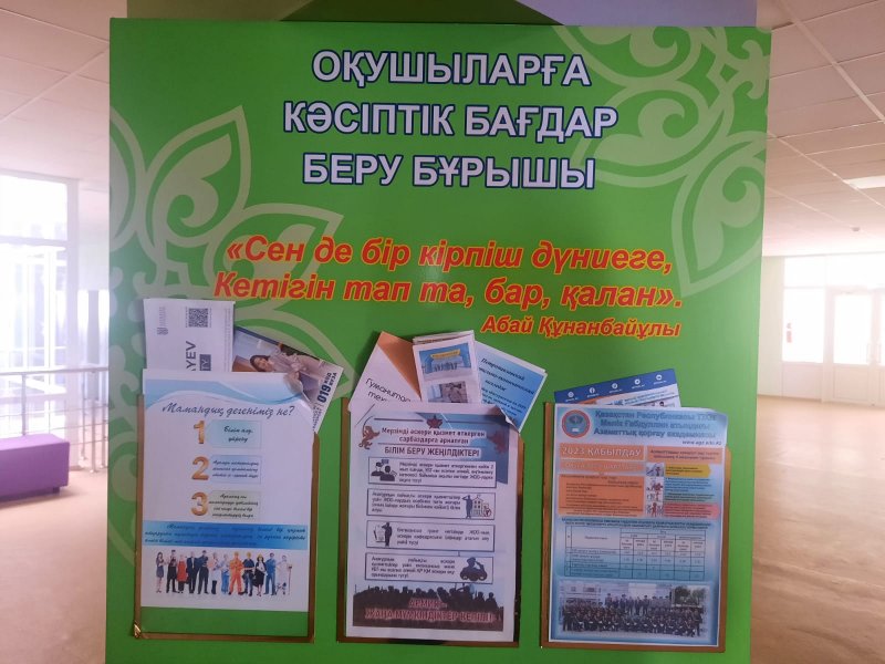 Мамандық таңдау-бұл болашағыңды таңдаумен бірдей десек қателеспейміз. Осы оқу апталығында мектебімізде “СЕНДЕ БІР КІРПІШ, ДҮНИЕГЕ ТЕТІГІН ТАПТА БАР ҚАЛАН” атты апталық өтті. Жоспар бойынша оқушыларымыз мамандыққа қатысты іс-шараларға қатысып өз белсенділіктерін көрсетті. Е.Даутов атындағы “Қызмет көрсету саласы” колледжіне-мектебіміздің оқушыларына “Мамандықтар әлеміне” саяхат жасауға өз мүмкіндіктерін көрсеткендері үшін алғысымызды білдіреміз!